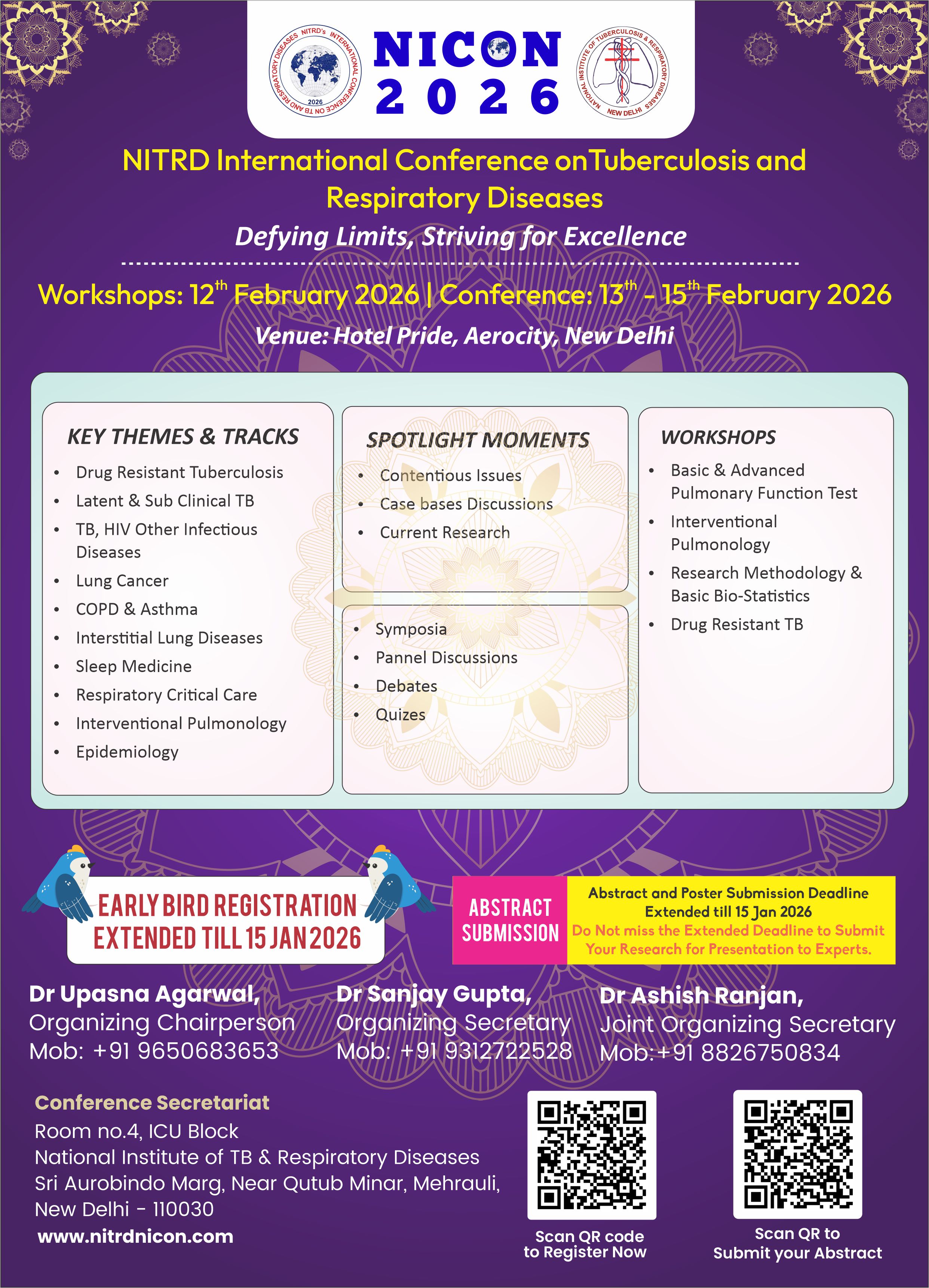 It is with immense pleasure that I invite you to the NITRD, International conference on Tuberculosis and Respiratory Diseases, to be held from February 12-15, 2026, at the National Institute of Tuberculosis and Respiratory Diseases (NITRD), New Delhi.